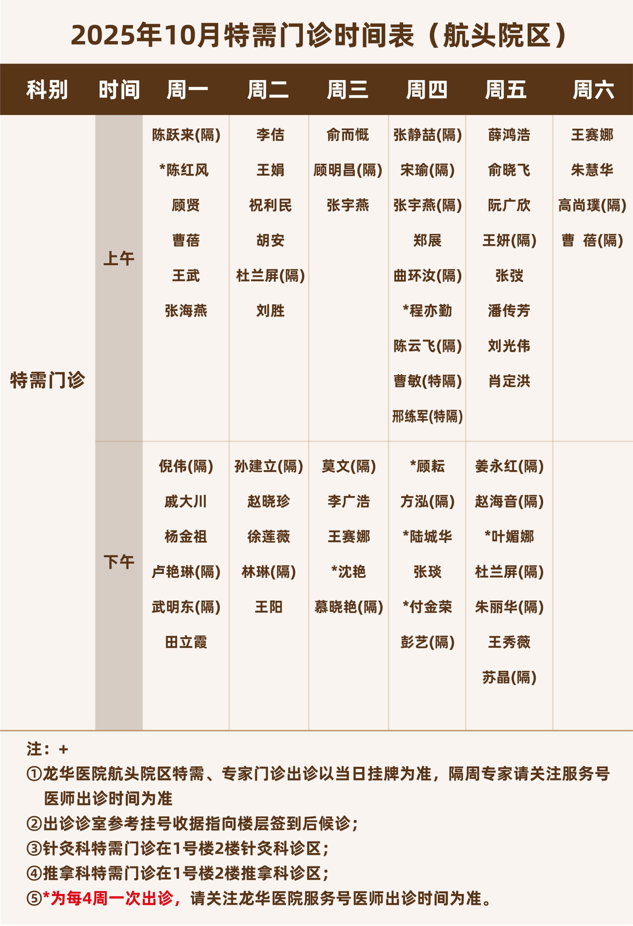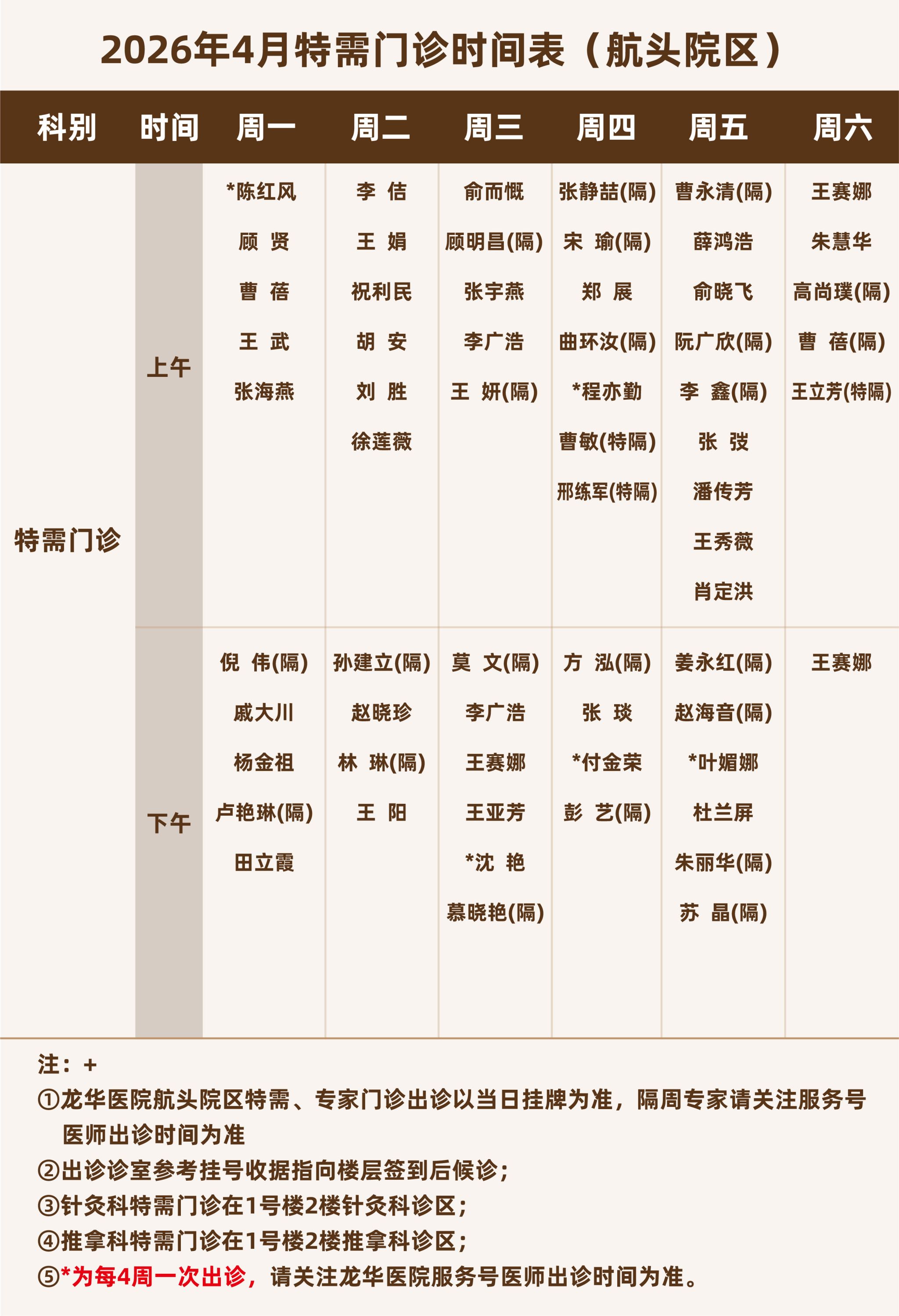 航头院区特需门诊时间表