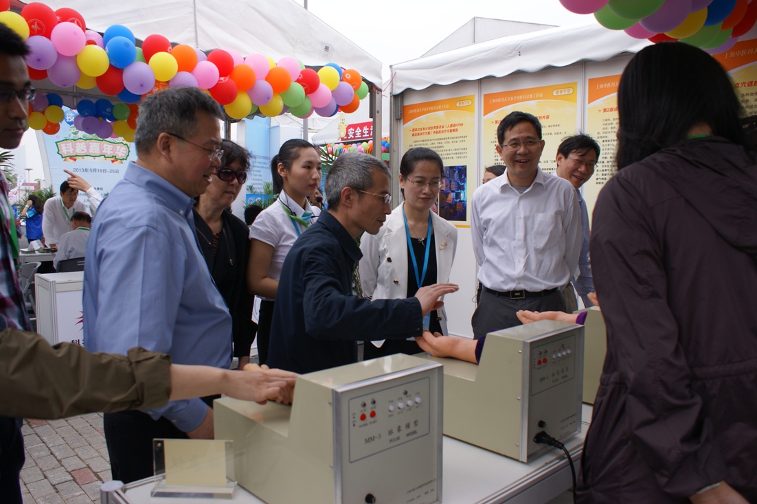 (团委讯)5月19日-25日,2013年全国科技活动周暨上海科技节在浦东2062新能源主题公园举行,本次科技节的主题是“科技创新引领幸福生活”,主会场展示面积达4.5万平方米,参展项目达700多项,为历届之最。我院上海中医药大学龙华中医药实践工作站作为“健康生活”板块内容参与本次科普盛会。展示内容有“鼻尖上的中药”、“模拟中药房”、“我也是点穴高手”、“中药花草茶”、“感受中医把脉”等几部分,受到前来参观市民的热烈好评。