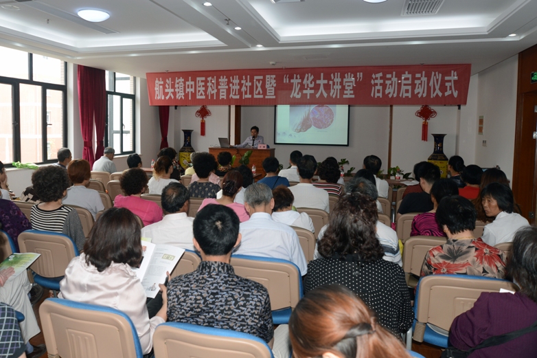 鹤沙航城社区是航头镇新兴的市属大型居住区,拥有大批导入人口,居民们对于健康科普知识的需求非常大,而中医中药在社区预防保健方面有着天然的优势。 “龙华大讲堂”活动自5月起到12月,我院团委将每月派一位青年专家前往授课,内容包括高尿酸、颈椎病的预防保健、四季食疗、穴位保健按压、传统保健功法等多个方面。此外,龙华临床医学院的青年志愿者也将进入社区开展医疗志愿活动。