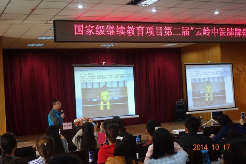 张医师向云南当地中医医师系统介绍了名老中医邵长荣教授在辨治肺胀病的学术经验、我院呼吸科开展的冬病夏治中医特色技术,还着重介绍了邵老创立的慢阻肺康复锻炼操——保肺功,以及保肺功的临床研究,并在大会上播放了保肺功的教学视频,引起了参会学员的浓厚兴趣。保肺功教学视频光盘作为学习资料发给了学员。