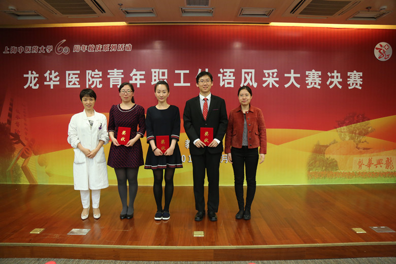 工会、教学处、团委讯 5月20日下午,作为庆祝上海中医药大学建校60周年系列活动之一的2016年龙华医院青年职工外语风采大赛(决赛)在我院远志楼二楼会议室顺利举行。中华中医药学会翻译分会副主任委员兼秘书长丁年青、国际交流处高级同传王天君、我院风湿科副主任医师王骁担任评委。我院院长肖臻、工会常务副主席陆为华、教学处副处长吴晓莉、团委书记黄景山和近百名选手助威团、我院外语爱好者们参与本次活动。