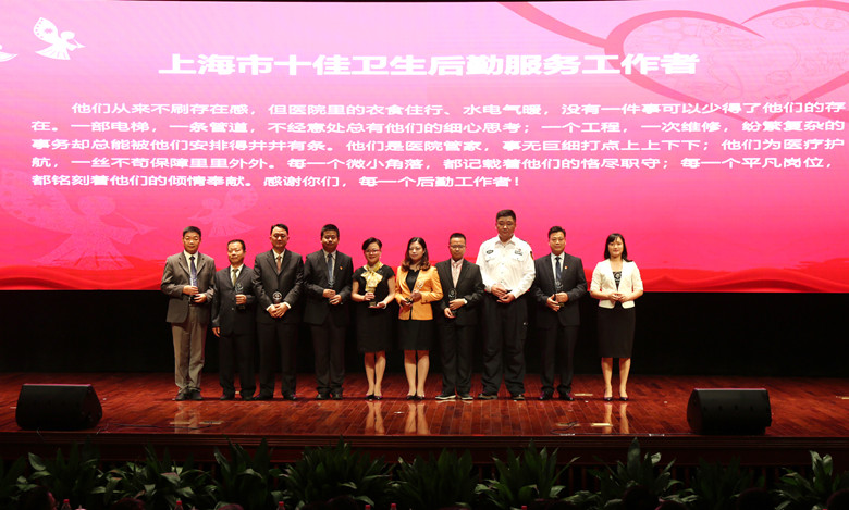 宣传处讯 在首个“中国医师节”来临之际,为践行社会主义核心价值观,大力弘扬“敬佑生命,救死扶伤,甘于奉献,大爱无疆”崇高精神,8月16日下午,市委宣传部、市文明办、市卫生计生委举行“我心中的白衣天使——市民为五‘十佳’颁奖”活动暨首个“中国医师节”庆祝大会。我院银浩强荣获“上海市十佳医技工作者”称号,方赛峰荣获“上海市十佳后勤服务工作者”称号,吴琛荣获“上海市十佳公共卫生工作者”提名奖,我院荣获第三届我心中的白衣天使——市民投票评选五“十佳”活动优秀组织奖。市民代表为五“十佳”优秀医务工作者颁奖,我院高炬副书记代表医院领取优秀组织奖。