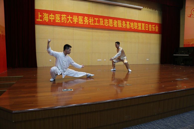 医务社工部讯 8月24日下午,“爱扬岐黄,善行天下”——上海中医药大学医务社工及志愿者服务基地联盟夏日音乐会在我院远志楼三楼会议室举行。上海中医药大学党委副书记、副校长朱惠蓉,上海中医药大学团委副书记万婕,八家附属医院的党政领导、社工部负责人,以及我院门诊、住院患者和患者家属参加了本次音乐会。
