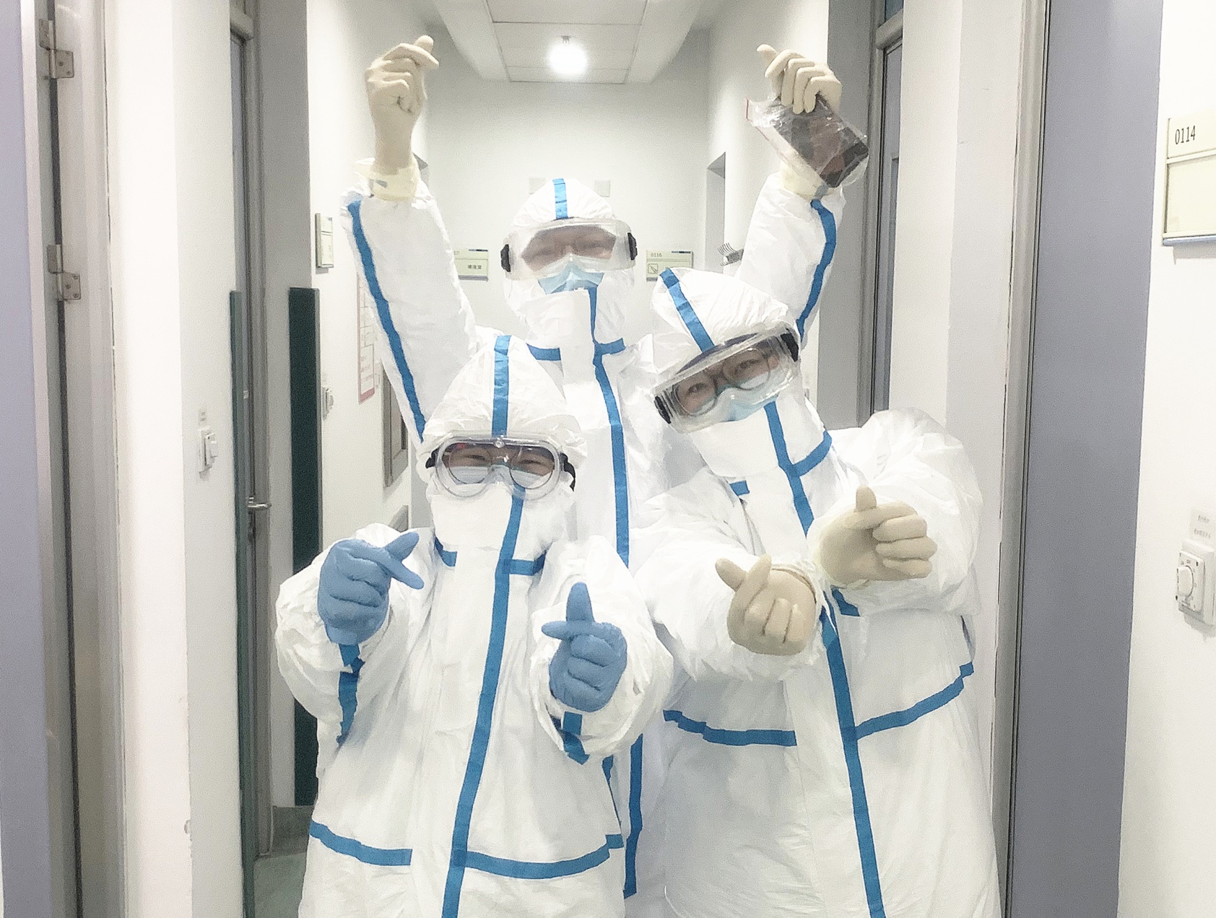 在人员紧缺的情况下,我院护理部第一时间安排其他科室的护理姐妹来增援,经过培训,她们迅速投入战斗,与发热门诊的护士们并肩作战,面对不熟悉的环境、工作方式以及来势汹汹的疫情,她们同样毫不退缩。纪蓓莉负责核酸采样的病人干咳症状明显,边采样边呛咳、打喷嚏,危险系数非常高,但她并没有因此而退缩,不停安慰病人,坚持完成操作。有一次负压病房收治了一位九十多岁的疑似老人,老人面对隔离环境手足无措,加之行动不便,双耳失聪,生活不能自理,李捷、张鞠、吴琼丽、蔡露等几位轮班护士日常照护这位老人,在负压病房一待就是五六个小时,细心照顾,耐心的安慰让老人能够积极配合检查、治疗。感染科主任张玮连声夸奖护士姐妹们的爱心和责任心。