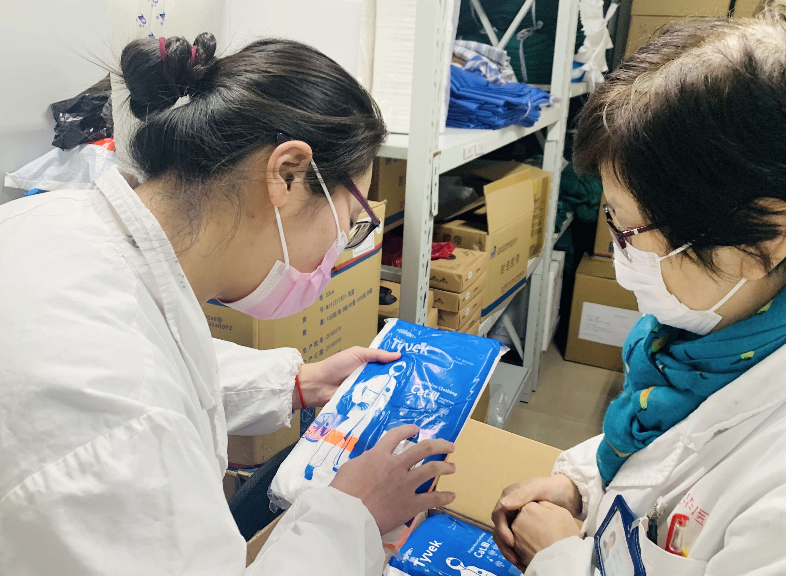 吴琛与科内同事张梦媛一起反复研究各类防护用品的规范要求,做到烂熟于心。面对不同语种文字、不同标准的防护品,她们查阅资料、在线翻译、求助高级别专家和市院感质控中心等,牢牢把握防护标准,为一线医护提供合格的防护产品。除此,张梦媛还对后勤保障部门以及临床科室进行科学防护的指导,在避免医护人员感染的同时,也避免过度防护,浪费资源。