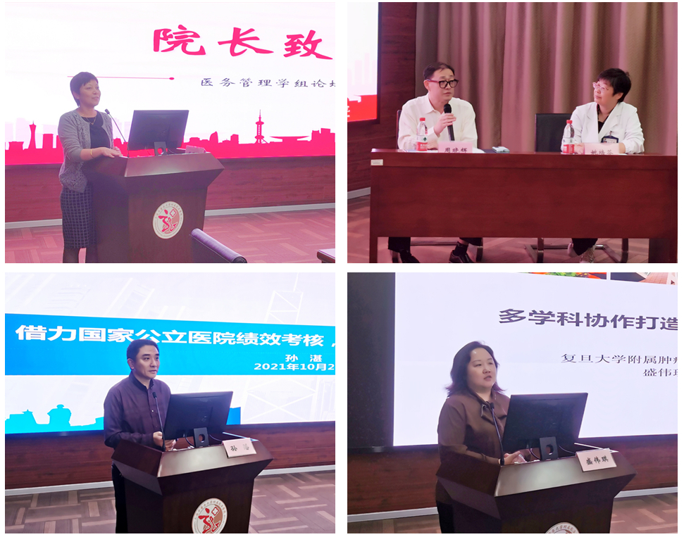 李屹副院长首先做会议致辞,欢迎各位领导、嘉宾来我院进行医务管理工作的交流。此次论坛以贯彻落实公立医院高质量发展战略部署,提升医院管理效能,构建优质高效整合型医疗服务模式为主题,邀请复旦大学附属中山医院医务处孙湛处长,复旦大学附属肿瘤医院医务处盛伟琪主任做主题演讲,上海交通大学附属第六人民医院医务处周晓辉处长、上海交通大学附属精神卫生中心医务处姚培芬处长为嘉宾主持,与各附属医院医务管理工作者共同交流分享公立医院绩效考核、多学科协作打造优势学科品牌的管理实践和成功经验。