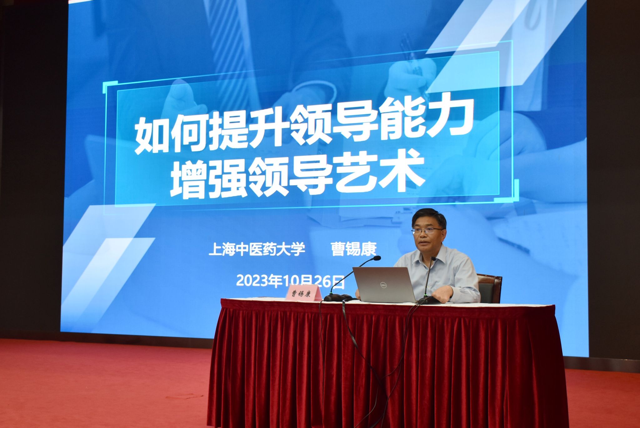上海中医药大学党委书记曹锡康进行了《如何提升领导能力、增强领导艺术》专题辅导讲座。他从领导能力、领导本领、领导艺术、领导方法等四个方面,结合管理学、心理学原理,进行了全面解读和阐释,引经据典,深入浅出,运用了大量古今中外的事例,具有较强理论性和指导性,对医院中层干部领导团队、建设团队提供了新思路。