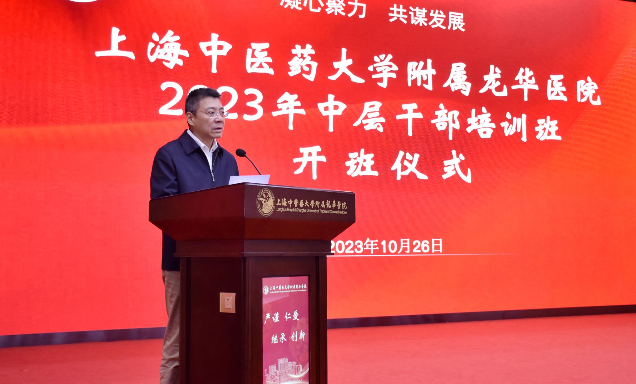 为坚持和加强党的全面领导,深入贯彻新时代党的组织路线和干部工作方针政策,加大医院中层干部的培训力度,增强中层干部的履职能力,提高中层干部的整体管理水平,建设一支具有较高政治理论素养和较强管理能力、德才兼备的干部队伍,10月26日下午,“凝心聚力,共谋发展 上海中医药大学附属龙华医院2023年中层干部培训班”开班仪式在远志楼3楼报告厅举行。院党政领导班子、党政职能科室负责人、业务科室负责人、党支部书记、教研室主任等180余人参加。上海中医药大学党委书记曹锡康为培训班进行首次专题辅导。开班仪式由我院党委副书记、院长陈跃来主持。