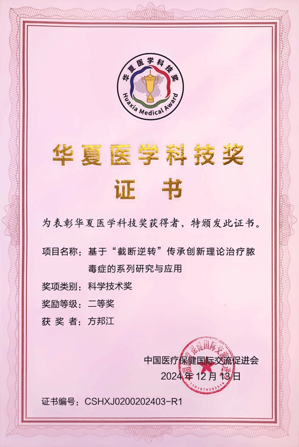 项目名称:基于“截断逆转”传承创新理论治疗脓毒症的系列研究与应用
