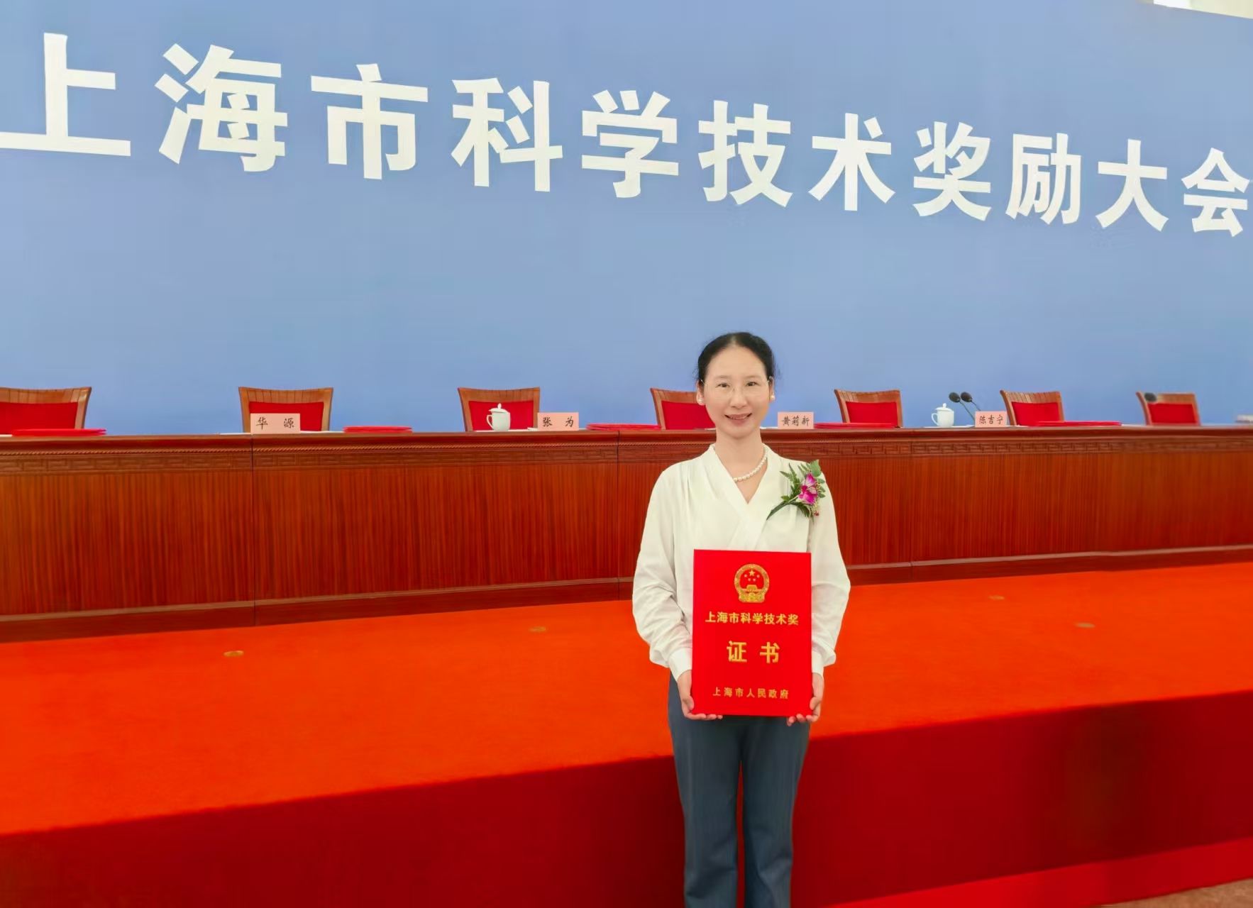 项目第二完成人、中医乳腺科主任叶媚娜现场领奖