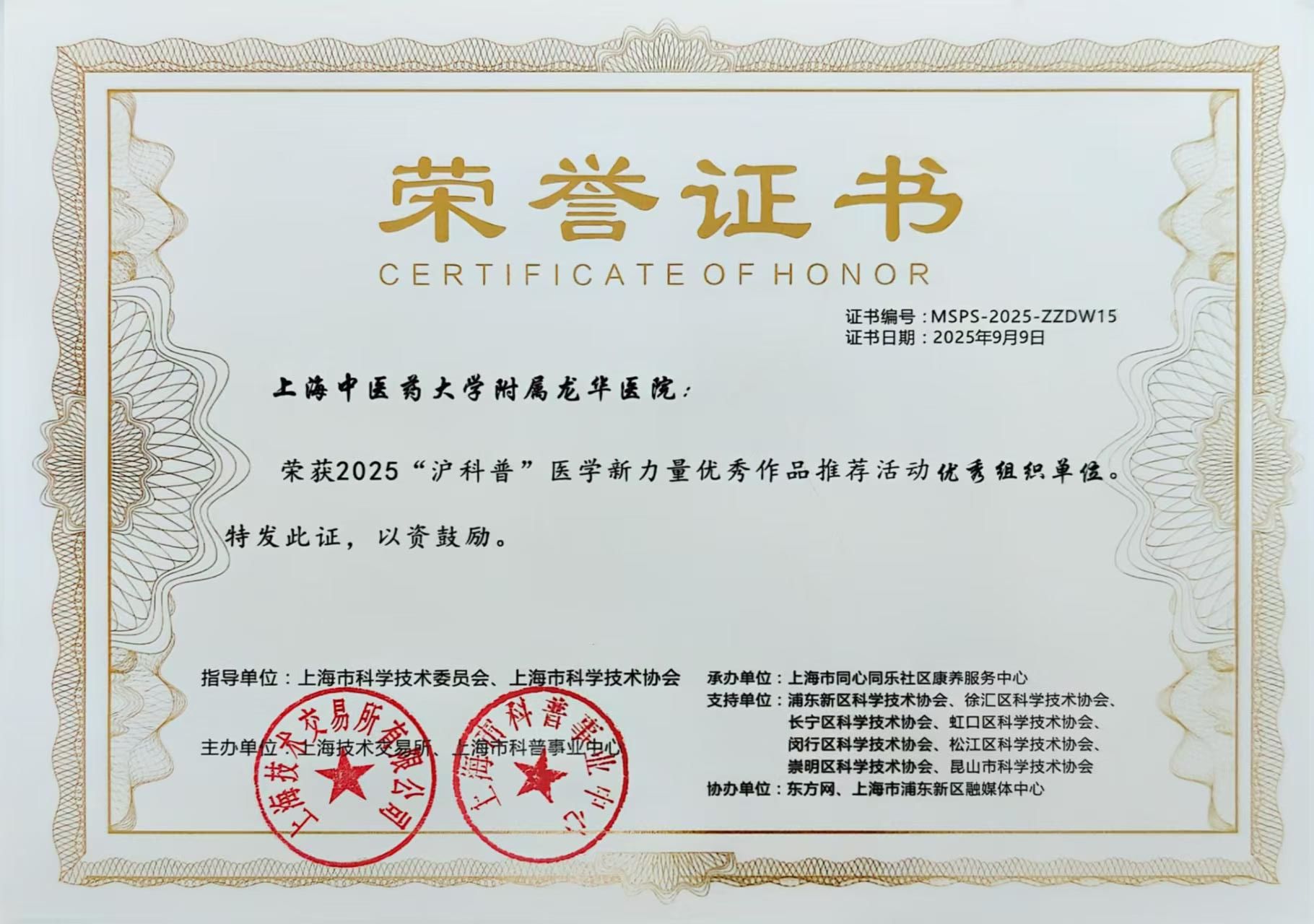 9月9日下午,2025“沪科普”医学新力量优秀作品推荐活动发布仪式暨首届科普创制及传播峰会召开,我院积极组织申报,荣获多项奖项。