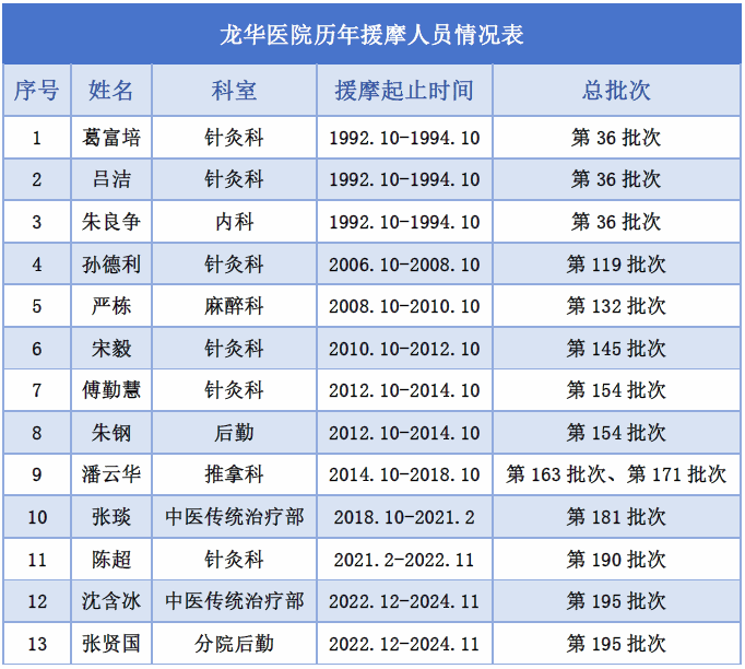 中国援摩洛哥医疗队穆罕默迪亚分队设立于1986年,是12支医疗队分队中唯一一支以中医针灸推拿为主的团队,有着鲜明的中医药特色,分队医生的高尚医德和精湛技术,深受摩洛哥当地各界人士的欢迎,也得到了中国驻摩大使馆、中资企业、华侨社会等的充分肯定。我院自1992年起至今共派出了10批次、13名队员到摩洛哥穆罕默迪亚开展医疗服务,各位队员克服重重困难,舍小家为大家,充分彰显了“不畏艰苦、甘于奉献、救死扶伤、大爱无疆”的援外医疗队精神,队员们为提高摩洛哥公立医院医疗水平,增进中摩人民友谊,深化中摩医疗卫生合作,传播中医药文化作出了卓有成效的贡献。