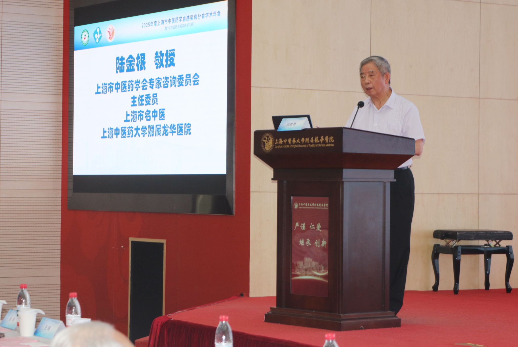 上海市中医药学会专家咨询委员会主任委员、上海市名中医、龙华医院陆金根教授致辞,感谢大家在百忙之中齐聚一堂,共同探讨中医药在感染病防治领域的新进展与新未来,期待通过这样的学术活动,进一步加强中西医的合作,促进多学科的融合,为构建更加完善、更加高效的感染病防治体系贡献力量。