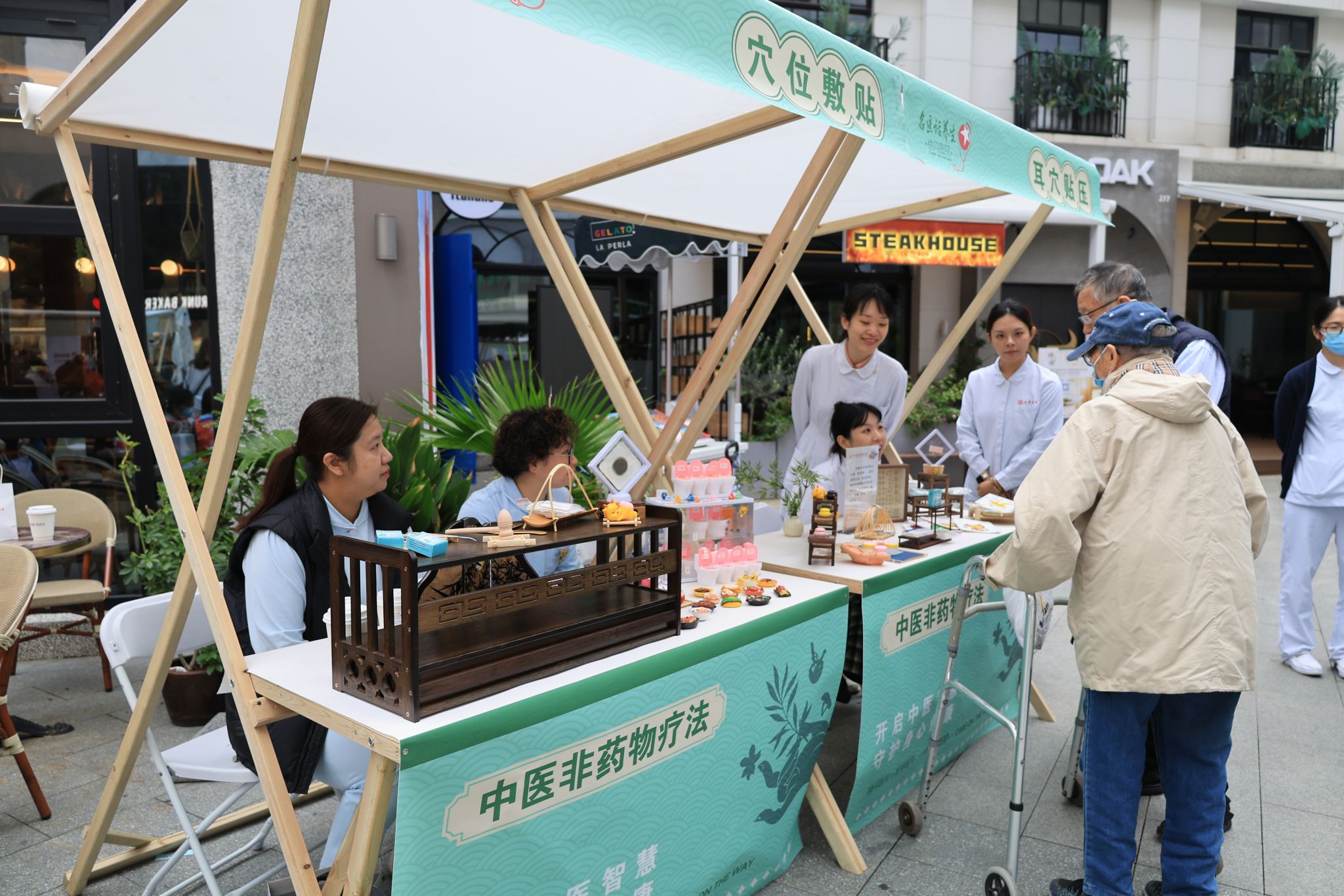 上午的快闪行动,除了健康咨询之外,还有国家级、市级非遗项目“顾氏外科”“石氏伤科”“徐氏儿科”“陈氏妇科”的现场展示。此外还有中医药科普、养生体验的相结合,市民现场体验穴位敷贴、耳穴贴压、体质辨识、膏方制作与展示、茶饮品鉴、香牌制作等内容,吸引了不少市民群众驻足参观,参与体验,开启一场集中医智慧,守护身心健康之旅。