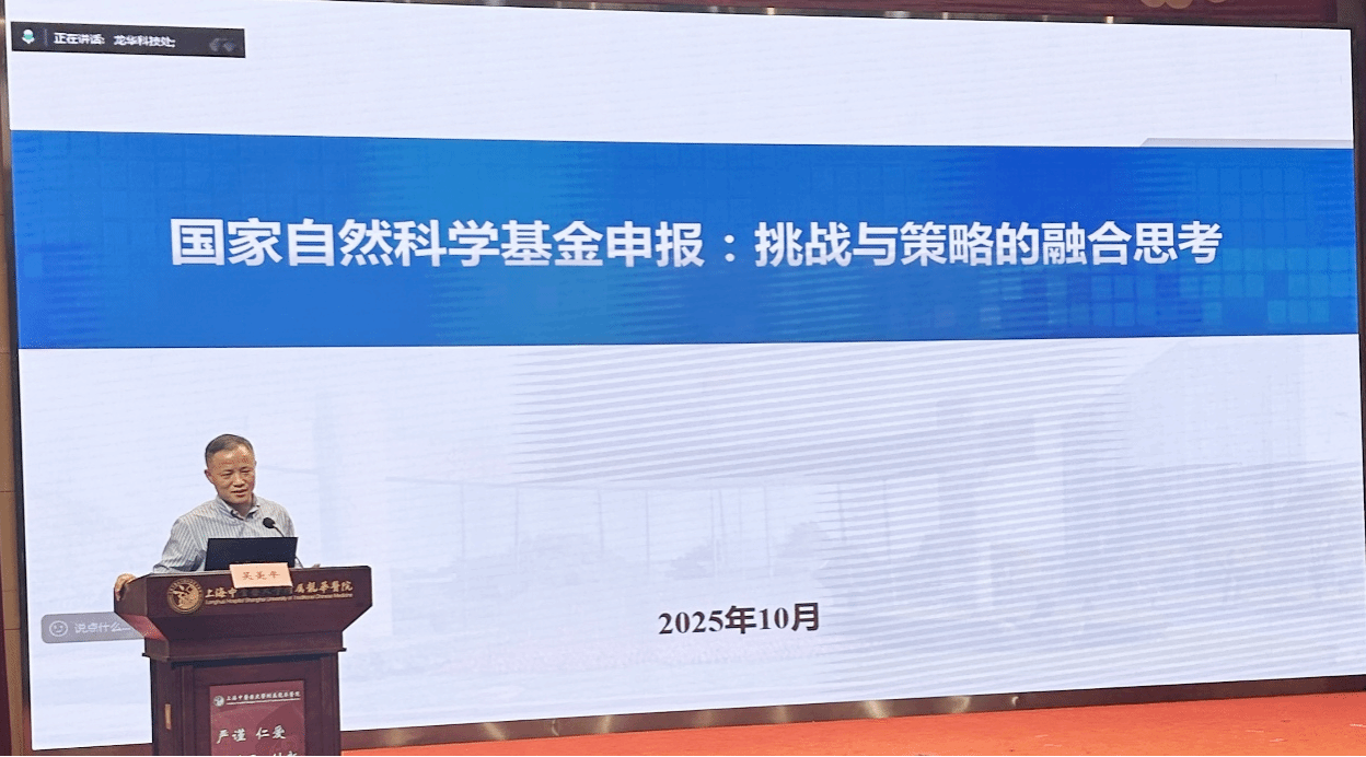 启动会上,上海中医药大学科技处处长吴美平围绕“国家自然科学基金申报:挑战与策略的融合思考”主题,从管理层面和申报技巧双维度进行了系统讲解,为申报者提供了详尽的方法指导。