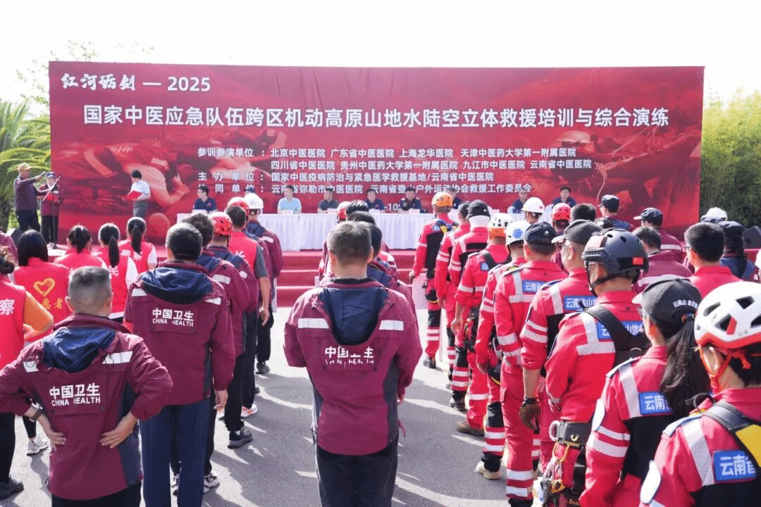 为深入贯彻落实国家中医药应对重大公共卫生事件和疫病防治骨干人才库建设方案,推动中医药在紧急医学救援与疫病防治中发挥重要作用,2025年10月16日至20日,由云南国家中医疫病防治与紧急医学救援基地、云南省中医医院主办,弥勒市中医医院、云南省登山户外运动协会救援工作委员会协同承办的“云南省中医疫病、紧急医学救援基地和骨干人才库培训暨京津沪粤川滇黔赣八省市国家中医应急队伍跨区域高原山地水陆空立体救援培训与演练”在云南省红河哈尼族彝族自治州弥勒市顺利举行,来自国家中医药应对重大公共卫生事件和疫病救援医疗队等共计300余人参加了此次联合演练。