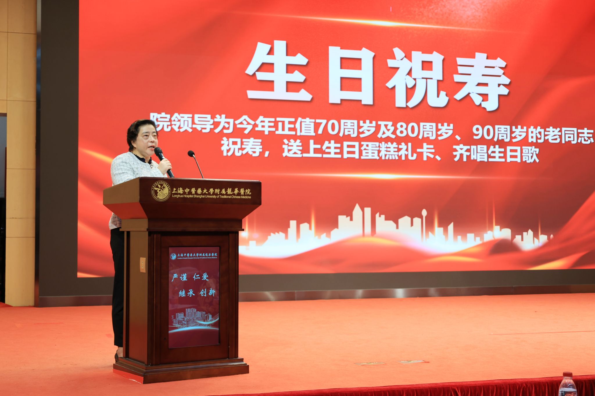 金秋送爽,丹桂飘香。2025年10月29日,正值中国传统重阳佳节暨上海市第38个敬老节,我院离退办组织举办的以“情暖金秋颂重阳,感恩敬老意绵长”主题的“龙华医院2025年敬老节庆祝大会”在医院远志楼三楼会场温馨召开,我院党委书记陈跃来,副院长王琛、郑培永、黄文褀,总会计师徐军学以及各职能科室负责人、退休职工近200余人参加。庆祝大会由退休职工姚旭、陈晓主持。