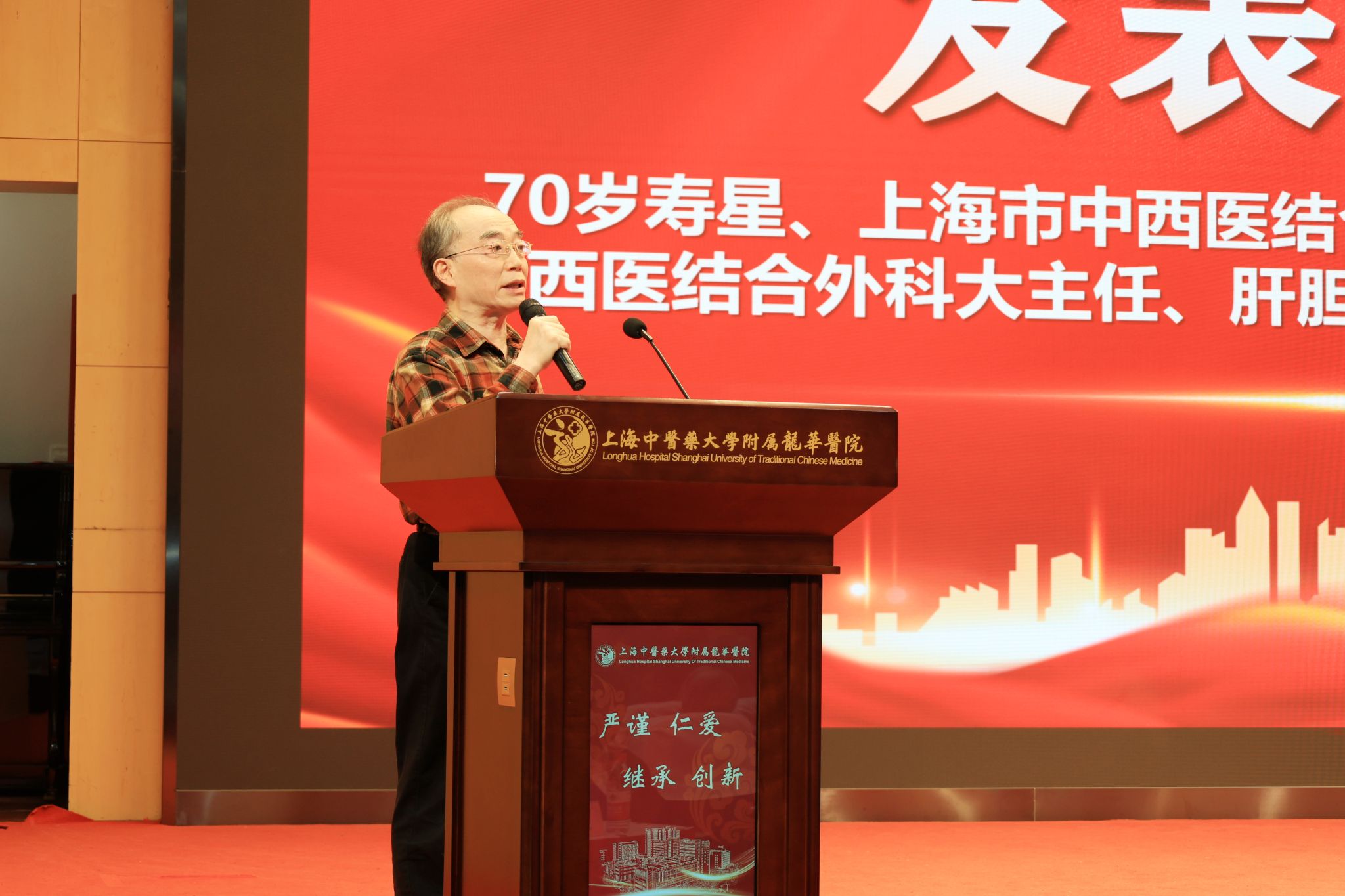 今年刚满70周岁的张静喆教授作为祝寿对象代表发言,他深情回顾在龙华医院工作的岁月,言语中充满了对医院深深的眷恋与感激。他提到,这份与医院共同成长的情谊是他一生最珍贵的财富。虽然已经退休,但‘龙医人’的身份永远不会改变,他将继续关注并支持医院的发展,相信在充满活力的新一代领导班子带领下,龙华医院的明天必将更加灿烂辉煌。他风趣而真挚的感言,引发了在场老同事们的共鸣。