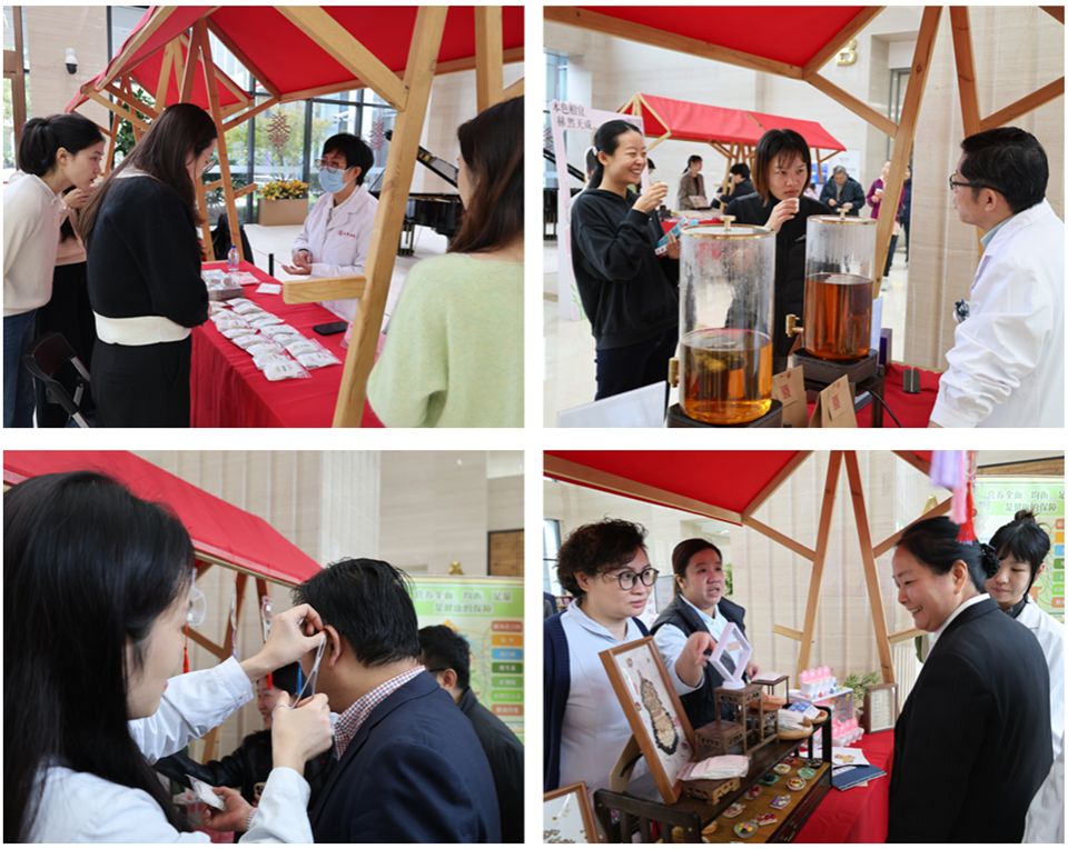 仪式现场同步开启的健康市集上,医院设置专属展位,带来茶饮品鉴、膏方展示、一对一健康咨询等特色服务,更有敷贴、耳穴压豆等中医护理适宜技术体验,让大家近距离感受传统中医药的独特魅力。