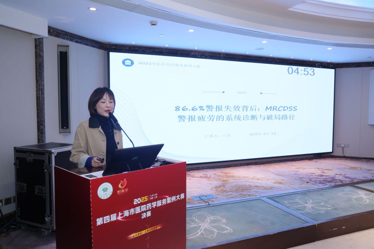 2025年11月12日,由上海市药学会举办的第四届上海市医院药学服务案例大赛中,我院药学部临床药师计嘉凭借其精彩的案例分析:《86.6%警报失效背后:MRCDSS警报疲劳的系统诊断与破局路径》斩获本次大赛一等奖。此次大赛初赛共44多家上海医疗机构参赛,经过激烈角逐进入决赛,我院药学部在决赛15支队伍中脱颖而出。