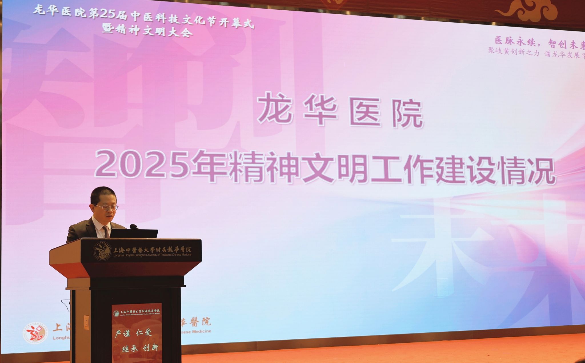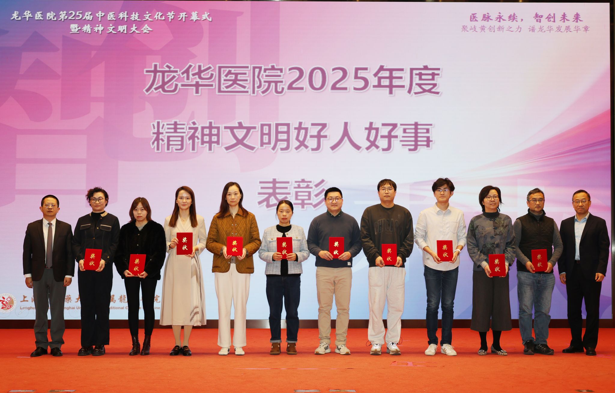 2025年是充满挑战与机遇并存的一年,也是医院在成长与进步中不断前行的一年。这一年来,龙华医院全院上下紧密围绕国家卫生健康与中医药发展大局,以习近平新时代中国特色社会主义思想为指导,学习贯彻党的二十大及历次全会精神,将精神文明建设工作贯彻于全局,在各级领导的亲切关怀与社会各界的鼎力支持下,全院龙医人以奋发有为的精神状态,在医疗服务、学科建设、人才培养、医院管理等各项工作中不断奋进,持续为中医药事业的高质量发展注入新的动能与活力。今后我院全体职工将继续在先进典型的引领下,心怀医者初心,牢记龙医使命,不断开拓创新,持续发挥中医药优势,加强内涵建设,打造服务品牌,推进医院高质量发展。