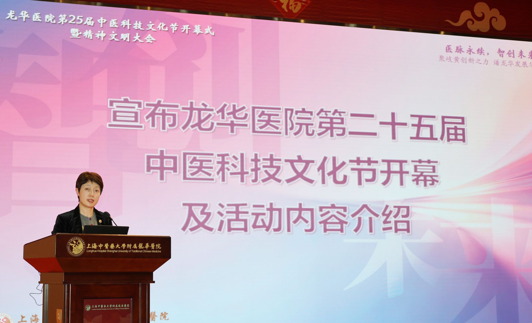 我院副院长王琛介绍了我院第二十五届中医科技文化节期间将开展的系列活动并宣布我院第二十五届中医科技文化节正式开幕,本届中医科技文化节活动丰富,有思想理论类活动、技能提升类活动、科技创新类活动、服务改善类活动等等,希望全体同仁以本届科技文化节为契机,积极参与丰富多彩的活动,在交流中互学互鉴,在实践中勇攀高峰,在院内营造浓厚的中医文化氛围,激发创新活力与发展动力,让文化力量推动医院实现高质量发展,共同守护人民群众的健康福祉。