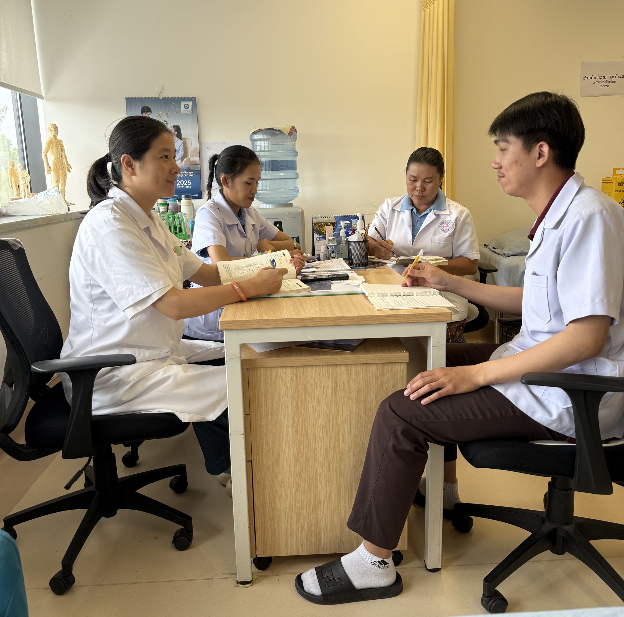 此外,老挝语的教材也非常少,所以当地医生的理论基础很难深入学习,实践经验也相对较少。为了让当地医生能够深入理解,单静怡将经络和腧穴做成中英对照版,配合图片直观讲解腧穴定位和功效,做成PPT图文并茂地逐条经络、逐个腧穴讲授。每一张影像学检查,她会深入浅出带着大家一起学习。她为当地医生开展中医理论、经络腧穴、中文教学等培训,分享经验,提升他们的医疗水平。在她的带动下,越来越多的老挝医生对中医产生浓厚兴趣,有不少年轻骨干开始学习中医,并希望有机会到中国进行进一步的深造学习。
