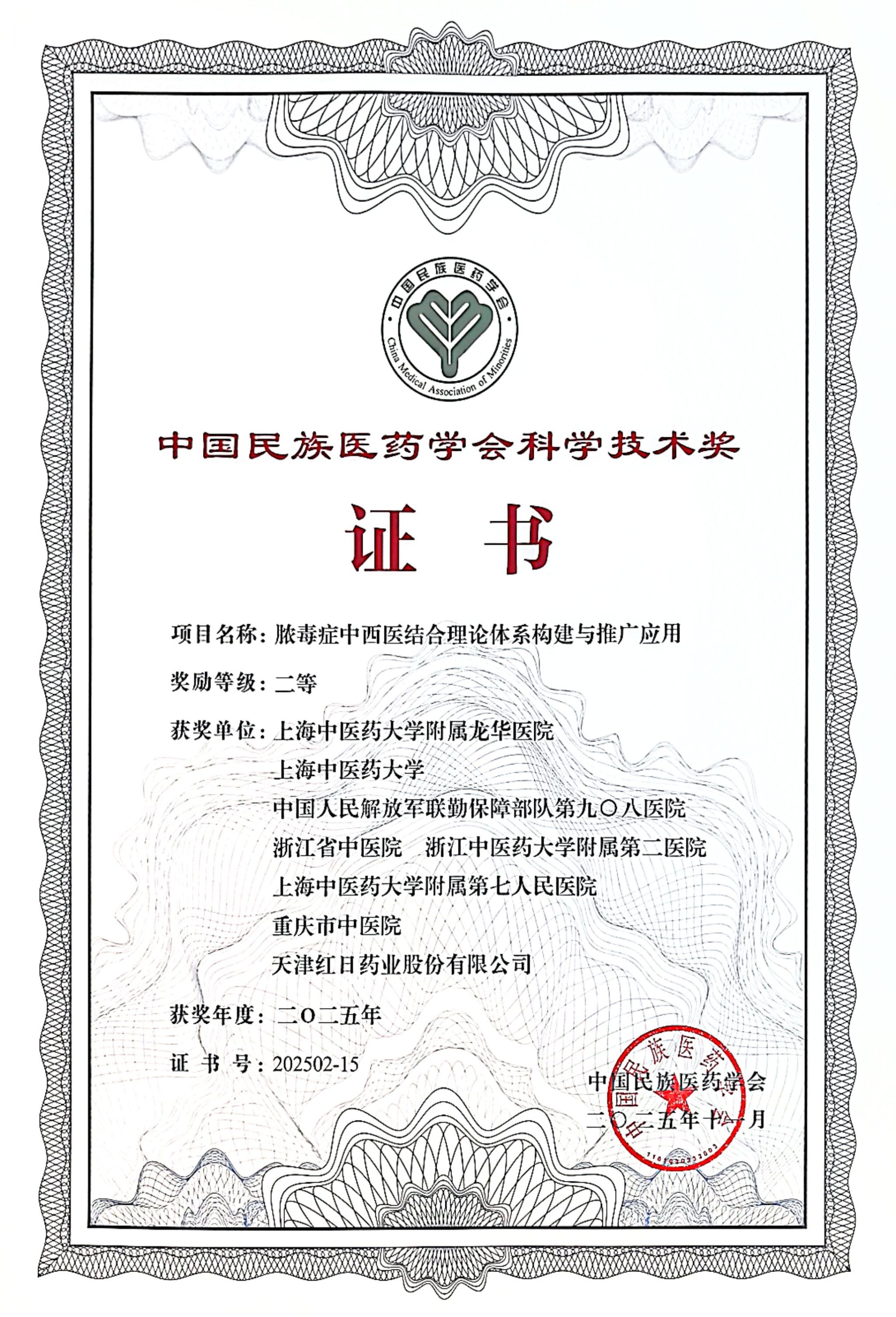 主要完成单位:上海中医药大学附属龙华医院,上海中医药大学,中国人民解放军联勤保障部队第九〇八医院,浙江省中医院,浙江中医药大学附属第二医院,上海中医药大学附属第七人民医院,重庆市中医院,天津红日药业股份有限公司
