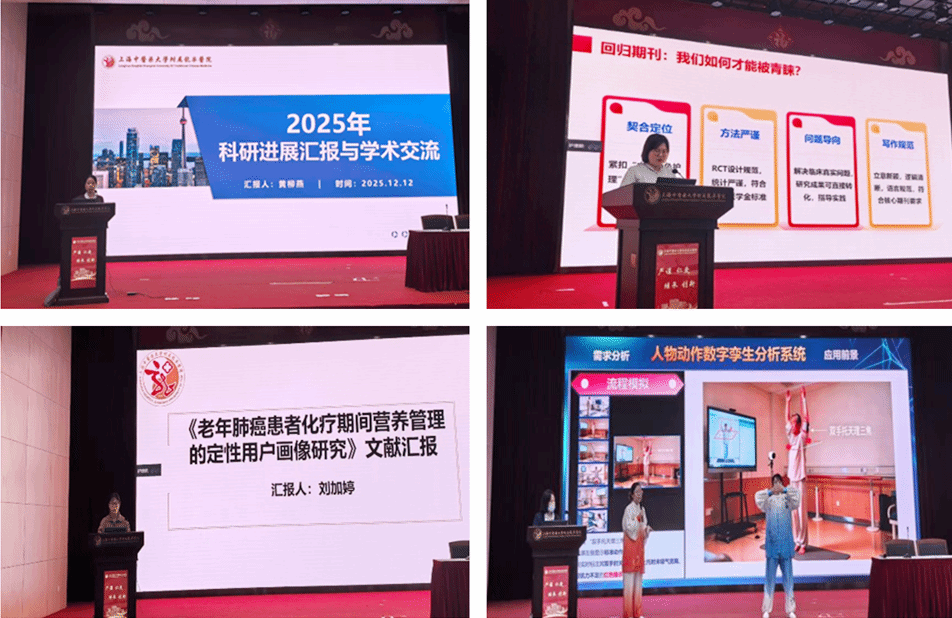 随后,会议进入精彩的论文交流环节。张菁护士长分享了《艾灸改善肿瘤患者血液高凝状态的效果研究》,该研究通过严谨的随机对照试验设计,探讨了中医特色疗法在肿瘤护理中的科学价值,为临床实践提供了新的循证依据。刘加婷汇报的《老年肺癌患者化疗期间营养管理的定性用户画像研究》,则运用质性研究方法,深入剖析了老年患者的真实需求与体验,展现了护理人文关怀与科学研究的深度融合。在成果转化方面,张磊带来的《专利成果转化的经验分享》尤为引人注目。他结合自身成功案例,详细讲解了护理专利从构思、申请到最终实现临床转化的全过程,为与会者提供了宝贵的实战经验,激发了大家将创新想法转化为实际成果的热情。孙艳、陈怡、黄艳颖团队共同带来的《基于多模态感知的人物动作数字孪生分析系统在八段锦康复护理教学中的应用》,则展现了前沿技术与传统康复护理的创新融合,通过数字孪生技术优化八段锦教学模式,为康复护理教学的智能化发展注入了新活力。