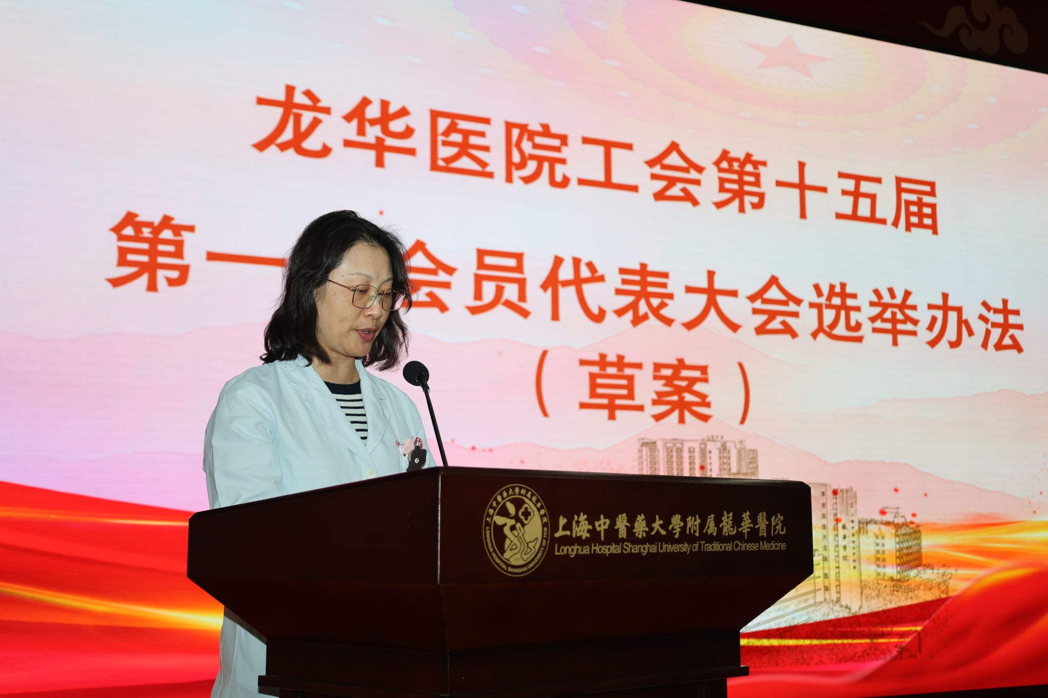 2025年12月25日下午,上海中医药大学附属龙华医院第十五届第一次会员代表大会在远志楼三楼举行。124名会员代表齐聚一堂,共绘工会工作新蓝图。