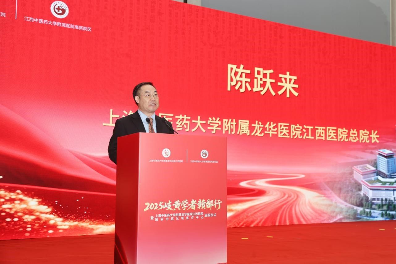 陈跃来在致辞中指出,合作以来,上海龙华医院始终以“真输出、真赋能、真见效”为准则,全方位支持上海龙华医院江西医院建设。站在新起点,龙华医院将继续以“国家队”担当,持续向江西输出核心资源,全力实现“大病不出省”的目标,进一步聚焦“共建共享”导向、立足“区域引领”定位、扛起“公益担当”责任,在多学科协作诊疗、中医药人才培养等方面持续发力,办好4500多万老区人民“家门口”的好医院。