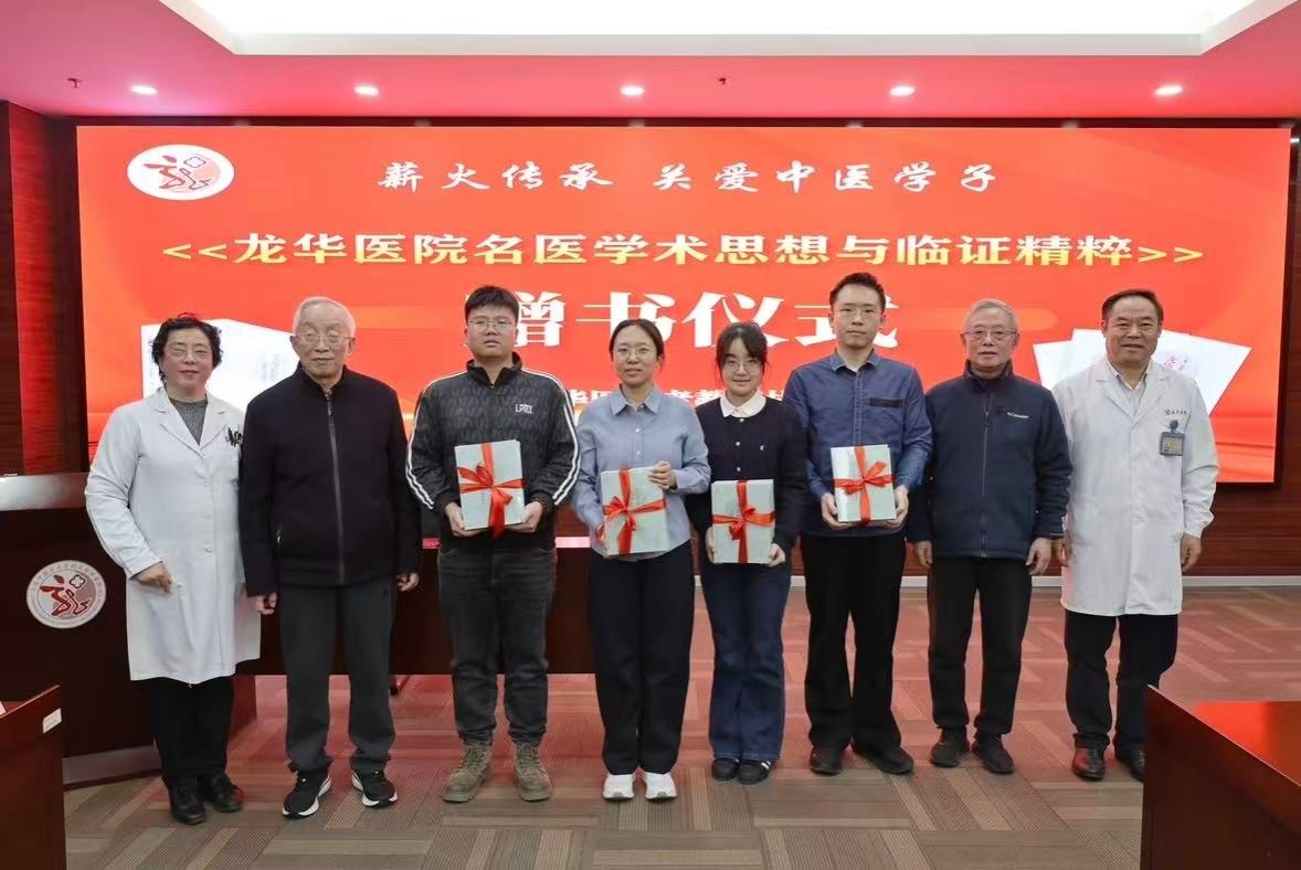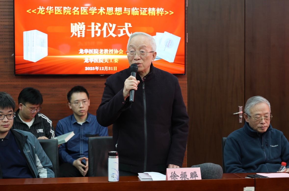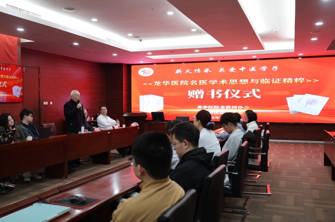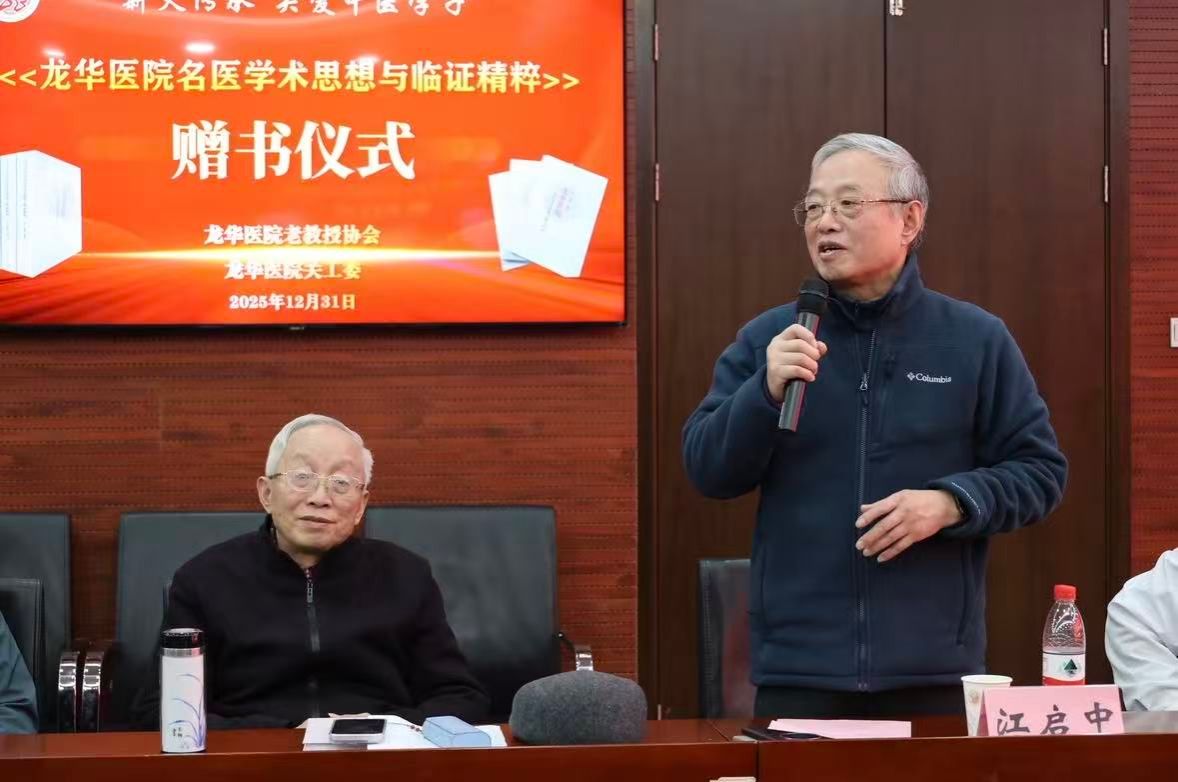 报告会结束后,龙华医院老教授协会借此机会,由会长兼关工委副主任江启中教授主持举行了简短隆重的《龙华医院名医学术思想与临证精粹》赠书仪式。