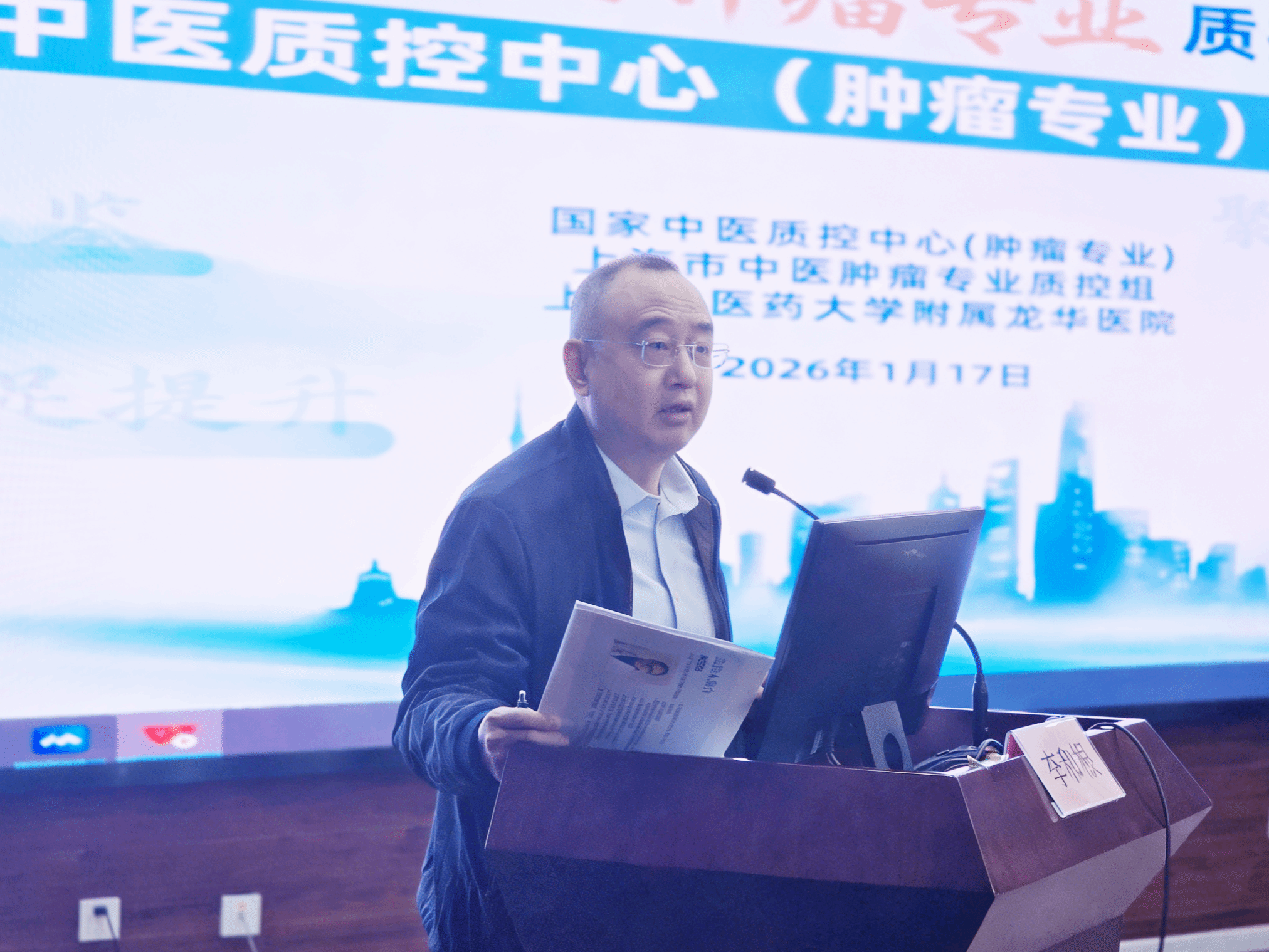 2026年1月17日,“国家级中医质控中心(肿瘤专业)筹建工作研讨会暨2026年上海市中医肿瘤专业质控组培训会议”采用线上线下相结合的方式在上海圆满召开。龙华医院作为国家级中医质控中心(肿瘤专业)、上海市中医肿瘤专业质控组长单位,承办了此次会议。上海市卫生健康委员会二级巡视员刘华、上海市中医监管处副处长管红叶、上海中医药大学附属龙华医院院长陈昕琳、副院长王琛等出席了开幕式。会议由龙华医院肿瘤科执行主任周蕾主持。
