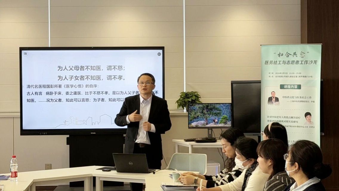 2月3日下午,由龙华医院主办的“和合共愈”医务社工与志愿者沙龙在我院1号楼9楼会议室举行。本次沙龙汇聚了来自高校、兄弟医院及医务社工领域的专家学者、一线社工与护理同仁,共同探讨中医药人文精神与医务社会工作的融合路径,推动“医学—人文—社会”协同创新。活动受到上海中医药大学“小青杏”医务社工与志愿者联盟支持。
