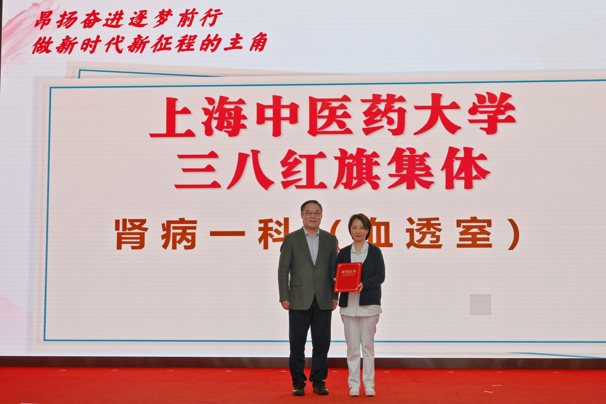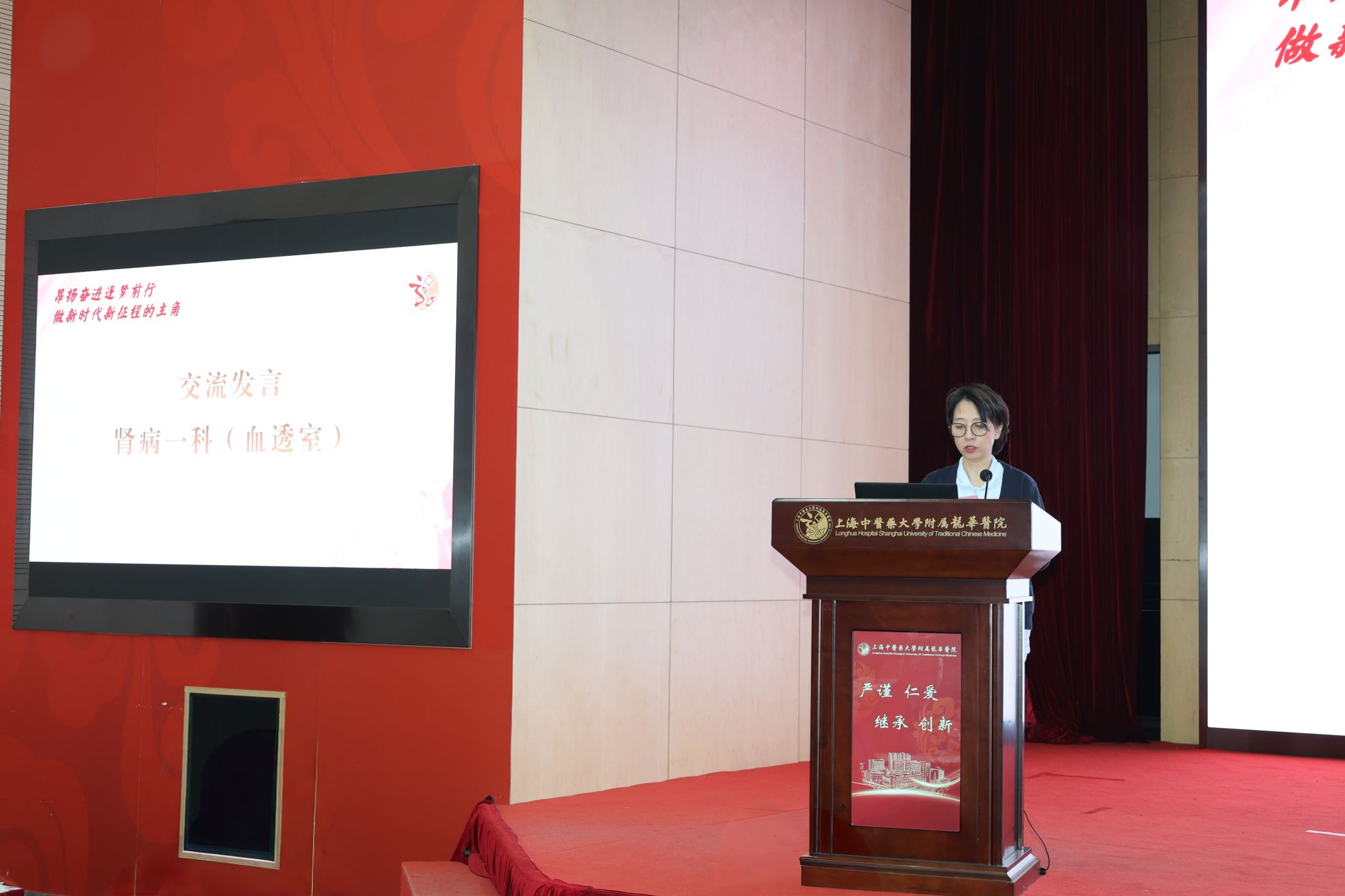 会上,上海中医药大学三八红旗集体代表王蔚琼护士长分享了肾病一科(血透室)在日常工作中的点滴与成长。她们用专业守护健康,用温暖治愈心灵,用行动诠释巾帼担当,在科室成员的共同努力下,传承海派中医精髓,践行辨证与辨病相结合的学术思想,为血透患者撑起生命的希望。