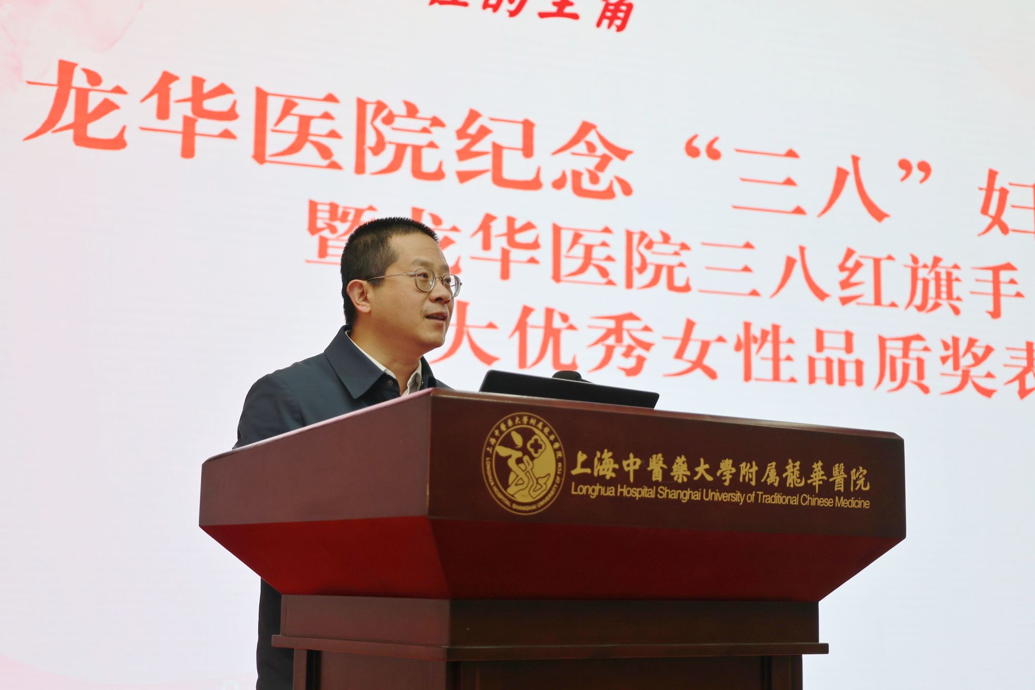 我院妇委会副主任沈琳向大会汇报了妇委会在过去一年所做的工作。我院副院长刘萍宣读了“关于表彰上海中医药大学附属龙华医院2023-2024年度‘三八红旗手’‘三八红旗集体’的决定”以及“关于表彰上海中医药大学附属龙华医院2024-2025年度十大优秀女性品质奖的决定”。