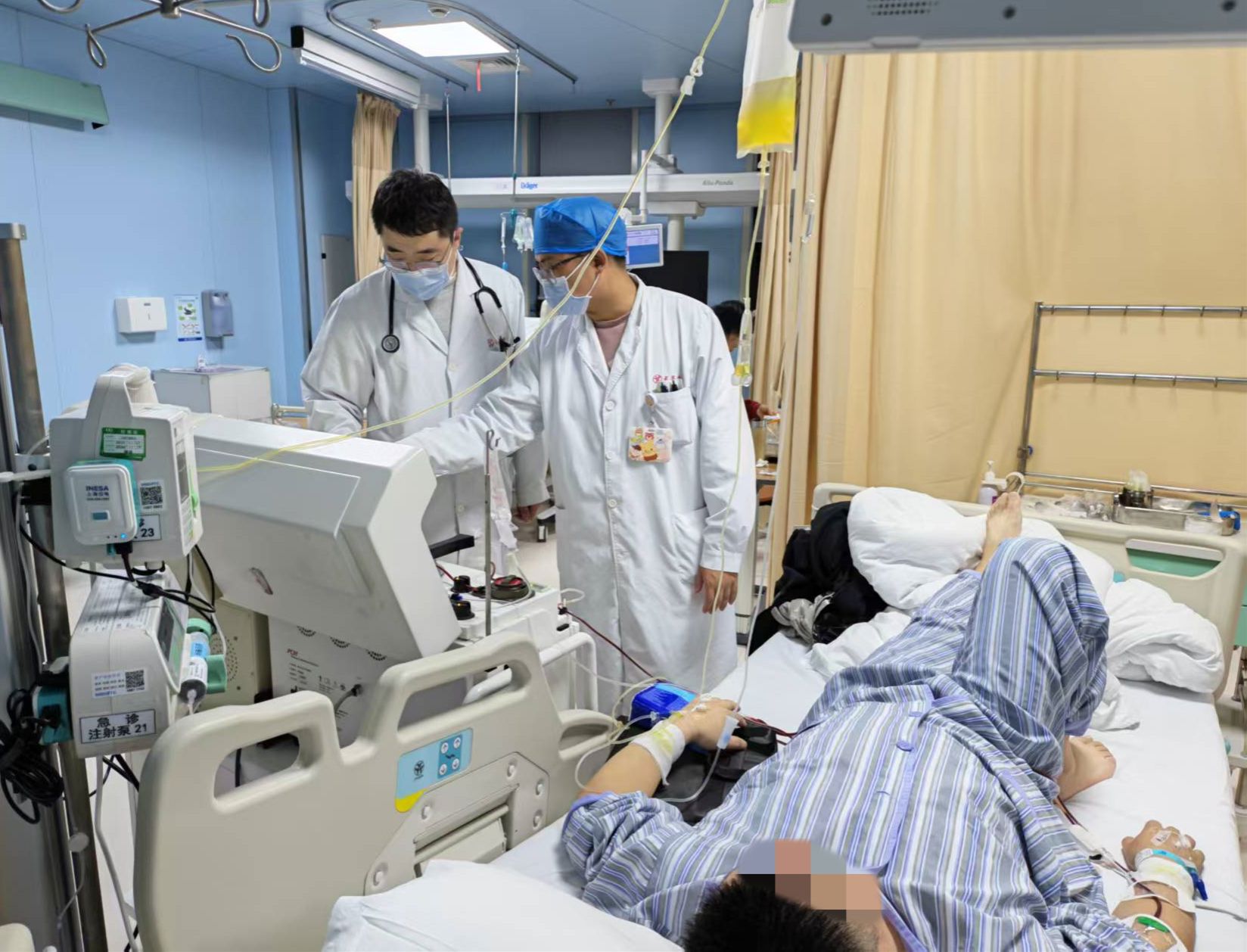 时间就是生命!急诊内科医护团队立刻启动紧急处置流程,危急时刻,床位医师鲁晓篝第一时间将患者情况上报曹敏主任医师,曹敏牵头带领急诊内科团队迅速研判病情、制定个性化治疗方案。考虑到患者甘油三酯水平极高,常规药物治疗难以迅速纠正高甘油三酯状态,无法短时间缓解胰腺损伤,曹敏果断决定采用“血脂滤过”这一高效救治手段,直击核心病因,为患者争取生机。血脂滤过对于顽固性高脂血症、急性胰腺炎伴炎症脂质代谢紊乱、以脂质代谢紊乱为特征的代谢综合征均有很好的治疗效果。该患者甘油三酯重度升高,血脂滤过可以迅速的降低血脂水平,为后续治疗争取时间和机会。