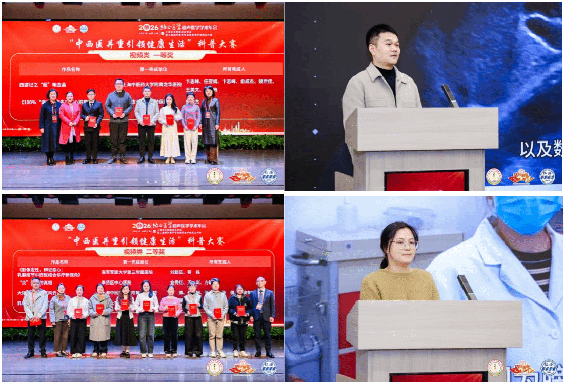 在“中西医并重,引领健康生活”科普大赛分论坛中,科室选送的三部作品表现优异,斩获各级奖项:卞志峰、任亚娟、俞成杰、姚世佳、王美文、陈汝筠等创作的视频类作品《西游记之“超眼金睛”》突破重围,斩获科普一等奖;张倩、任亚娟、张亚龙、盖姿如演绎的视频类作品《大锤之万万没想到》荣获科普二等奖;柴晓阳的图文类作品凭借扎实的内容呈现获得二等奖,让超声医学知识以更接地气的方式走进大众视野。