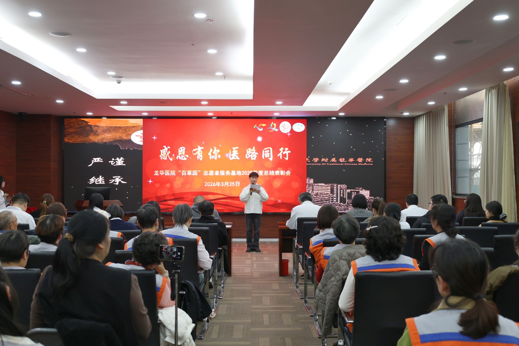 3月25日下午,“感恩有你 医路同行”龙华医院“百草园”志愿者服务基地2025年度总结表彰会举行。来自徐汇院区航头院区的志愿者,徐汇区枫林街道、漕河泾街道、浦东新区航头镇相关领导和合作单位代表,部分高校、高中志愿者团队负责人、医院相关职能部门负责人60余人参会,上海市慈善基金会工会主席、项目发展和客户服务部副部长袁峥嵘,徐汇区委社会工作部副部长解蕾,龙华医院党委副书记、纪委书记高炬等出席会议。