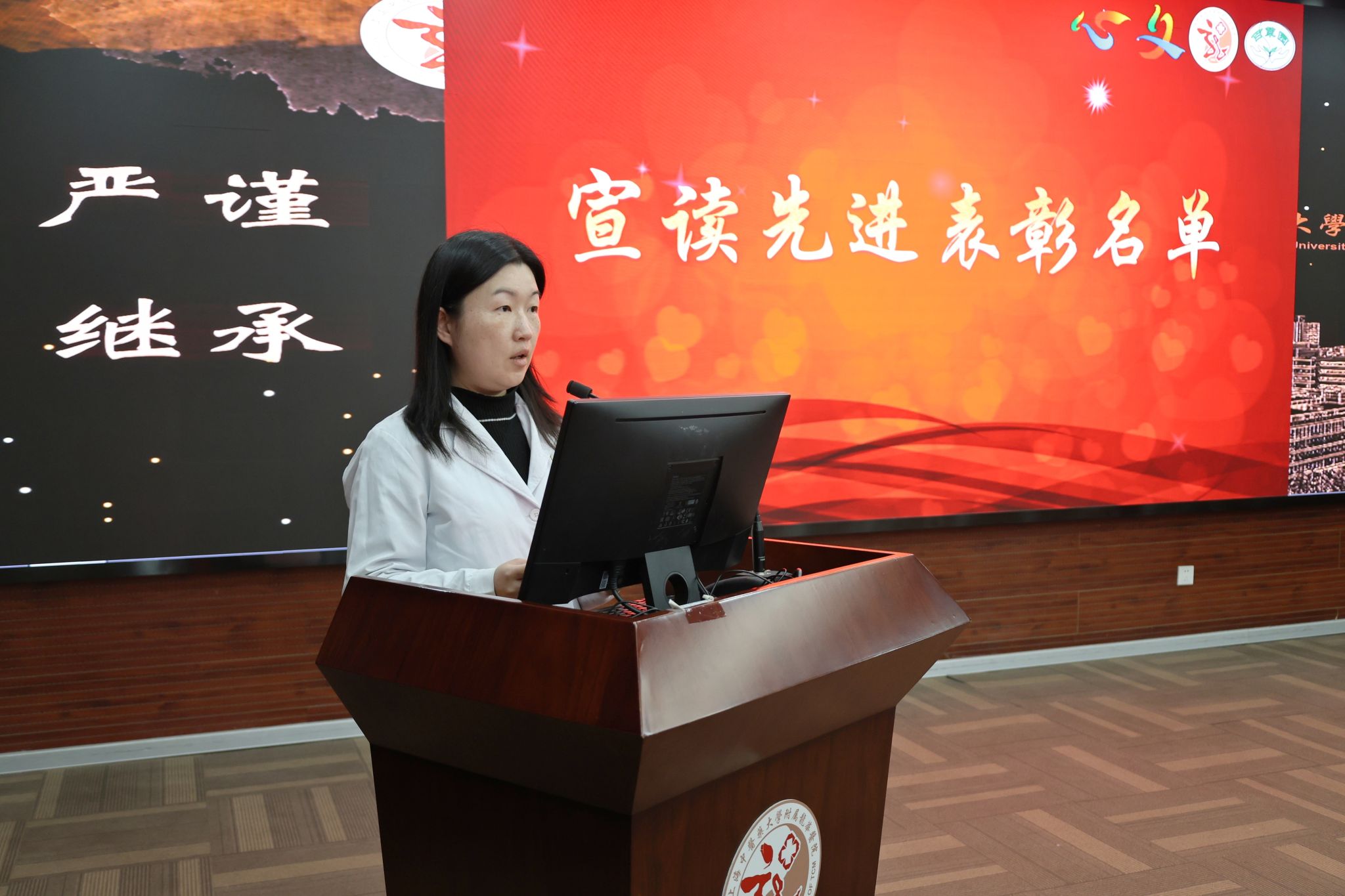 我院宣传部主任何洁宣读2025年志愿者基地先进表彰名单,祝贺所有的获奖个人和集体。