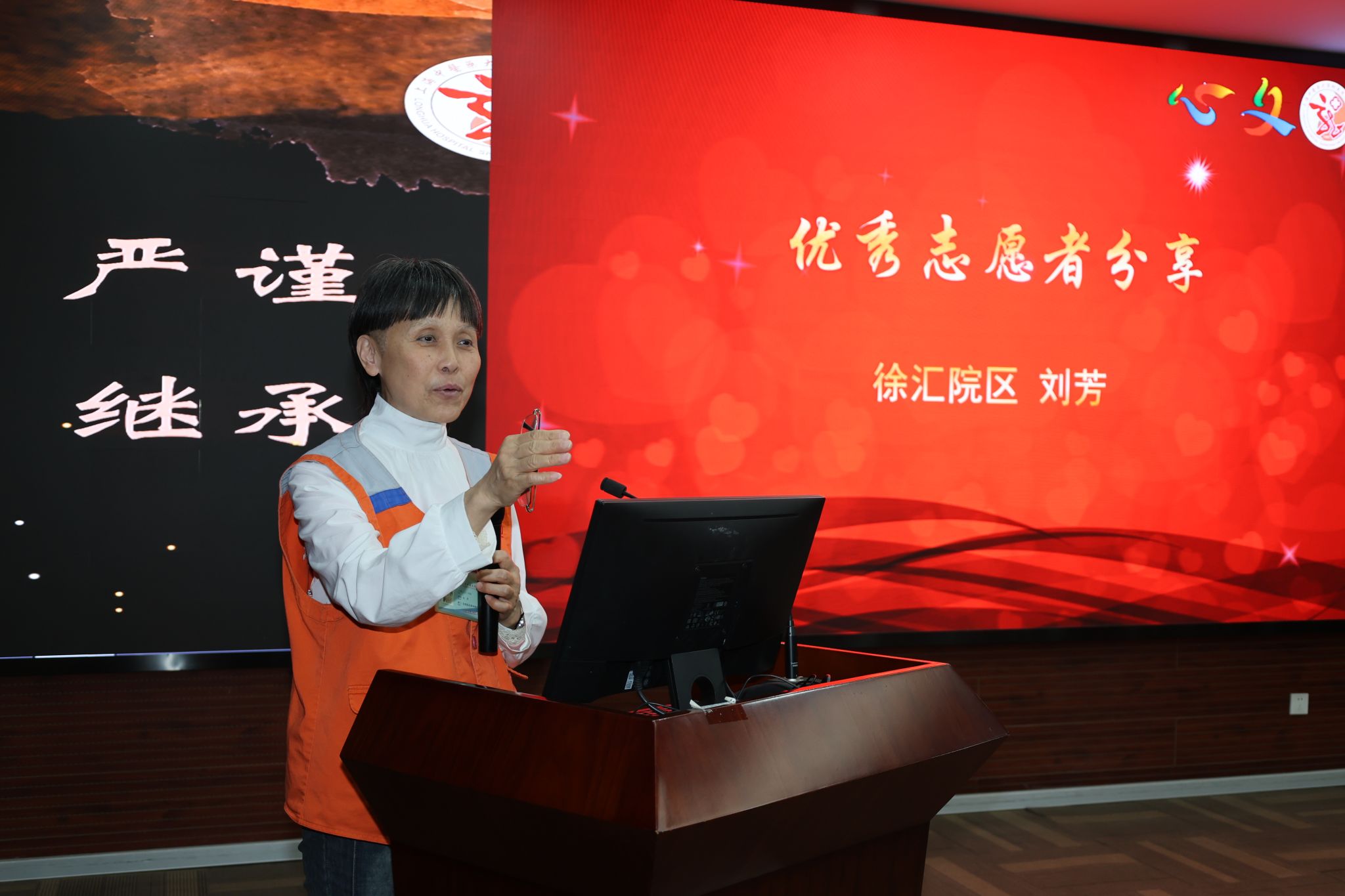 相关获奖志愿者带来先进事迹分享。来自徐汇院区的刘芳阿姨在百草园已经服务12年了,带着“越参加志愿服务越年轻”的感受,她带动了许多志愿者加入“百草园”的大家庭。