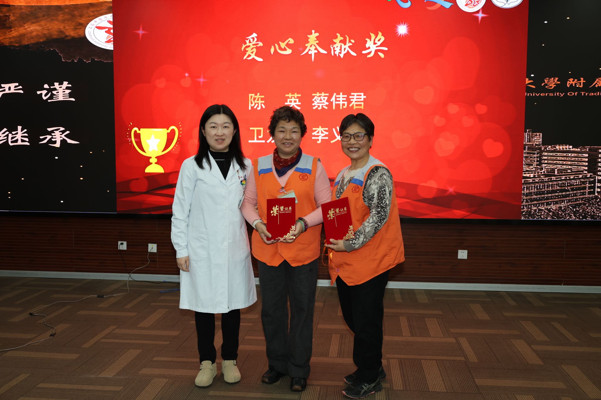 现场设置了特别环节,为从志愿服务岗位上二次退休的志愿者们颁发荣休纪念,医院党委副书记高炬为荣休志愿者代表邵慧娟颁发奖杯,感谢志愿者们多年来的默默奉献。